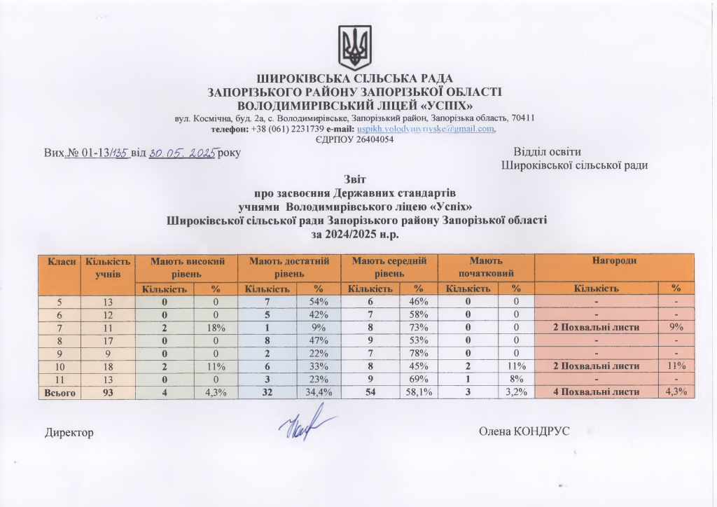 Володимирівського ліцею Успіх»: